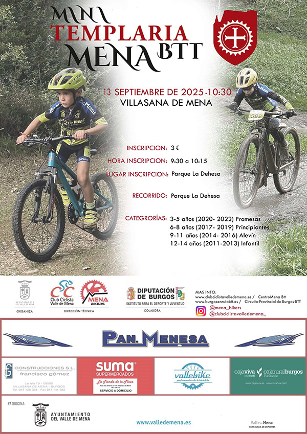 El Valle de Mena se convertirá en punto de referencia del ciclismo de montaña el próximo fin de semana con la celebración de la VII Templaria Mena BTT y la III Mini Templaria Mena BTT, organizadas por el Club Ciclista Valle de Mena con la colaboración del Ayuntamiento de Valle de Mena y el Instituto Provincial para el Deporte y Juventud de la Diputación de Burgos.