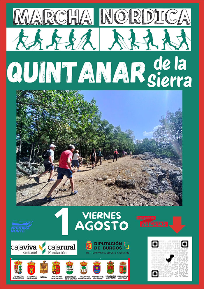 Quintanar de la Sierra acogerá este viernes, 1 de agosto, una jornada de marcha nórdica dirigida a personas mayores de 16 años interesadas en iniciarse en esta modalidad deportiva que combina ejercicio físico, salud y contacto con la naturaleza. La actividad comenzará a las 10:00 horas e incluirá un taller técnico-práctico de iniciación y una marcha guiada de aproximadamente 6 kilómetros por el entorno natural de la localidad.