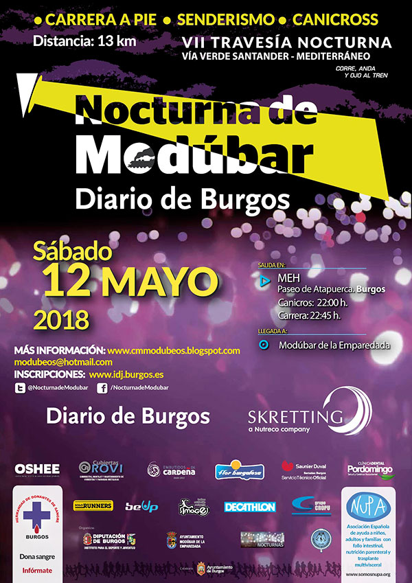 La VII 'Nocturna de Modúbar-Diario de Burgos' se celebrará el próximo sábado, 12 de mayo, sobre las tres disciplinas habituales: carrera a pie, senderismo y canicross.
