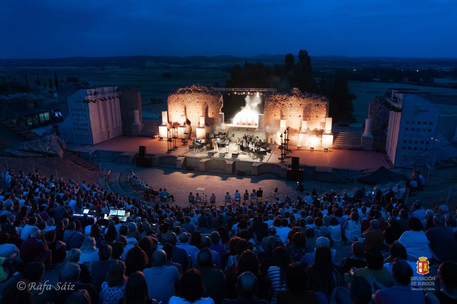 Las voces de Divinas acompañadas de su banda de músicos, transportaron a los público de Clunia a través de un espléndido viaje musical por los paisajes rítmicos de los años 40 y 50 en Estados Unidos. El glamour y savoir faire de las grandes orquestas de la época dorada del swing fue el hilo conductor de un repertorio interpretado de manera sólida, seductora y sofisticada, con toques de humor y diversión... y con el baile como aliado.